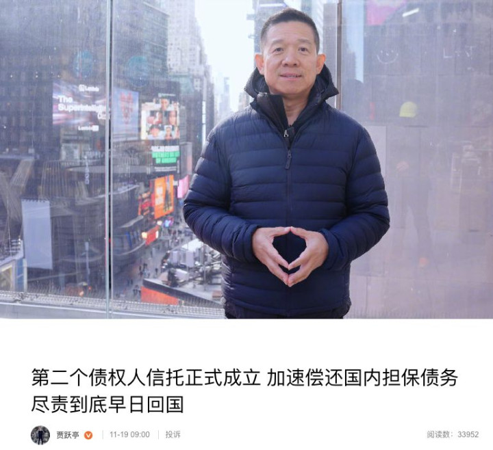 11月19日,贾跃亭宣布,经过几个月对新信托方案的磋商和论证,其第二个不可撤销信托已经正式设立完毕,并可以开始实施。